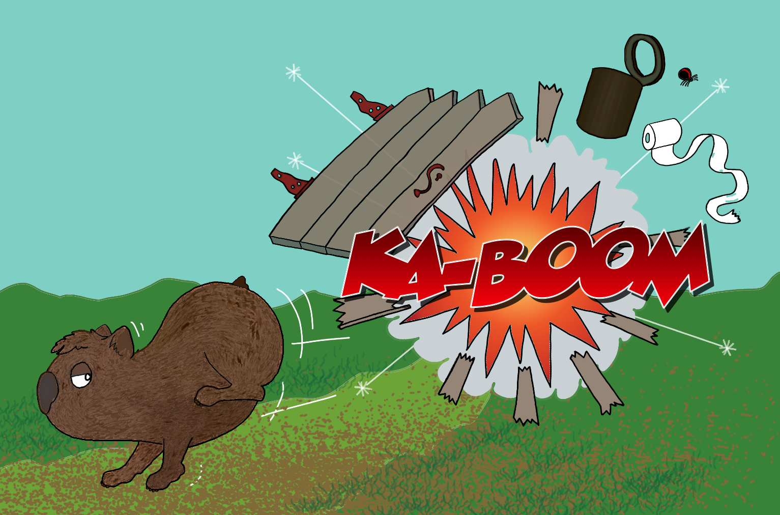 At that hairy moment, like the stone rolling away from the tomb, the pre-stressed door's stresses gave way and an omnipotent cloud of sand, dust, steel filings and the overpowering pong of New Zealand Sauvignon Blanc erupted from the gloomy depths. There followed a squint of beady eyes, a shake of an animal coat and the bulldozer of the Australian bush sullenly headed off toward his own short-sighted horizon.